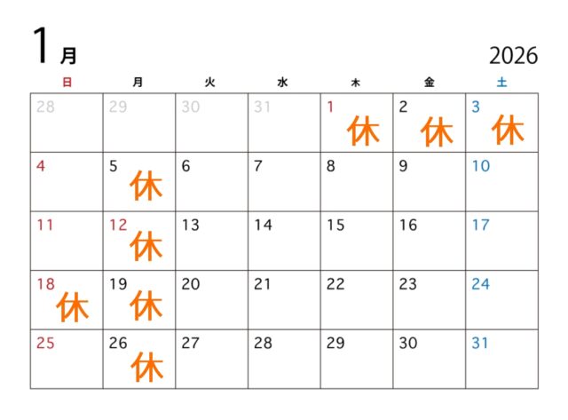 1月のお休み