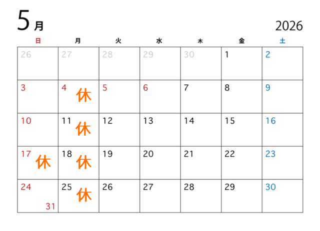 5月のお休み